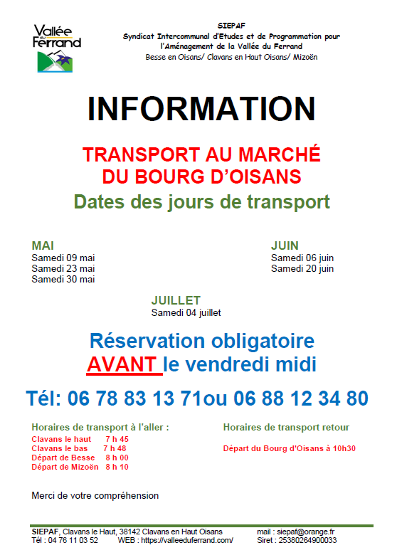 Navette transport au marché du Bourg d’Oisans