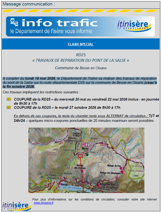 Besse en Oisans, aux confins de l’Isère, à la limite des départements de la Savoie et des Hautes Alpes, est une commune aux vastes alpages qui s’étend de 1200 à plus de 3200 mètres d’altitude, offrant ainsi une diversité de paysages et de charmes.
